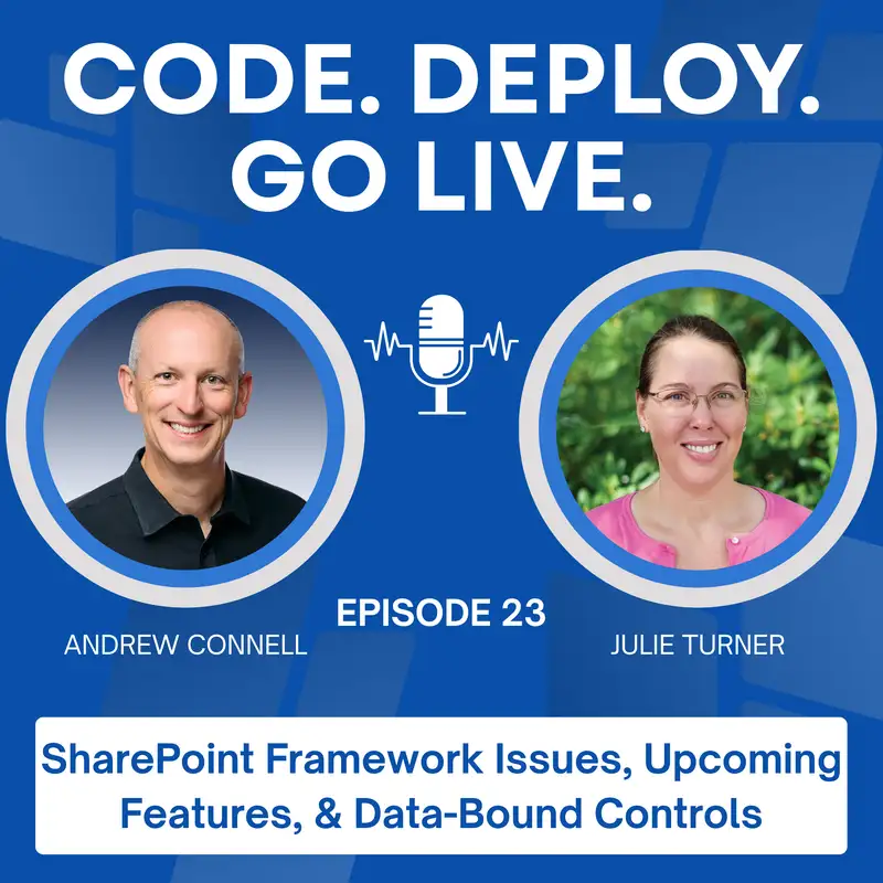 In this episode of the Code Deploy Go Live Podcast, hosts Julie Turner and Andrew Connell discuss significant changes in the SharePoint framework, particularly the tra...